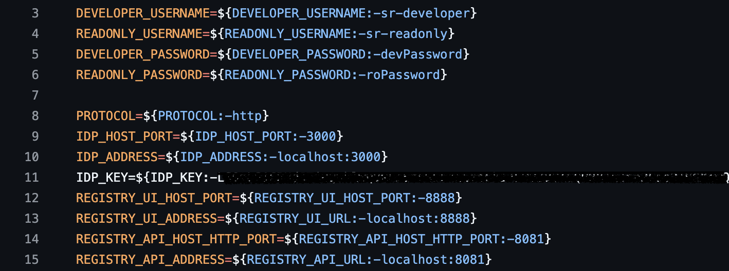 for img in {docker-images}/*.tar.gz; do docker load -i "$img"; done to load docker images. For Window use this instead for %i in (docker-images\*.tar.gz \*.tar.gz) do docker load -i "%i".docker tag solace-registry:1.0.0 solace-registry:latest for each docker image..env file to change things such as default login or ports. While using the built-in identity provider, we can leave everything to defaults for this codelab.